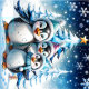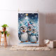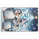 Three adorable penguins stand in festive winter hats and colourful scarves. Their big, round eyes shine with joy, while their fluffy white bellies contrast with the bright blue Christmas tree decorated with twinkling lights. The penguins smile happily and seem ready to celebrate the magic of the holiday season. All around them, delicate snowflakes dance through the air, while twinkling stars shine in the sky, creating a warm, festive atmosphere. This design perfectly captures the spirit of Christmas - full of joy, friendship and winter wonder!
