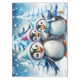 Three adorable penguins stand in festive winter hats and colourful scarves. Their big, round eyes shine with joy, while their fluffy white bellies contrast with the bright blue Christmas tree decorated with twinkling lights. The penguins smile happily and seem ready to celebrate the magic of the holiday season. All around them, delicate snowflakes dance through the air, while twinkling stars shine in the sky, creating a warm, festive atmosphere. This design perfectly captures the spirit of Christmas - full of joy, friendship and winter wonder!