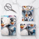 Three adorable penguins stand in festive winter hats and colourful scarves. Their big, round eyes shine with joy, while their fluffy white bellies contrast with the bright blue Christmas tree decorated with twinkling lights. The penguins smile happily and seem ready to celebrate the magic of the holiday season. All around them, delicate snowflakes dance through the air, while twinkling stars shine in the sky, creating a warm, festive atmosphere. This design perfectly captures the spirit of Christmas - full of joy, friendship and winter wonder!