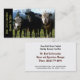 A trio of big brute steers of various breeds and colour combinations stand together on a field in the country with mountains, blue sky, and tall evergreen trees in the background. Customise both sides with your contact information to advertise your cattle farming ranch, abbatoire or custom cutting and wrapping butcher services.