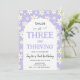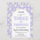THREE and Thriving Purple Daisy 3rd Birthday Invitation