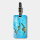Three baby sea turtles swim in the blue ocean waters on this fun aquatic design. The text is easily personalised.