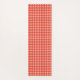 This yoga mat has three big black ants crawling on a red and white plaid picnic tablecloth pattern.