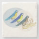 Three birds of different colour schemes with a tree branch in a simple boho style.