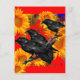 THREE BLACK BIRDS IN SUNFLOWER FIELDS POSTCARD