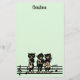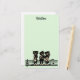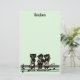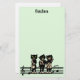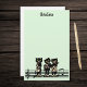 This stationery is pale green with three black cat musicians standing on a bar of black music notes playing their music instruments including a fiddle, guitar, and saxophone. Customise your name at the top with the template.
