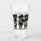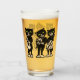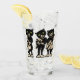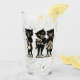 This glass tumbler for beverages has three black cats with green eyes playing music with their instruments that include a guitar, saxophone, and fiddle on the front and back.