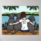 Sweet Three Black Labradors and Mum Design. Beautiful Black Labs and his/her Mum are having a good rest at the lake. What they are chatting??? You can customise text as you like. Nice gifts for Mother's Day for Black Labrador Moms! Created by Naomi Ochiai. Labrador gifts for Lab lover's home.