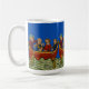 Three boats on the river Blue Coffee Mug