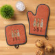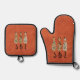 Three Boho Cats Orange Oven Mitt & Pot Holder Set