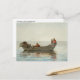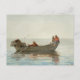 A fine art postcard with the painting by the American artist Winslow Homer (1836-1910), titled Boys in a Dory with Lobster Pots (1875). Boys out in a boat on the ocean near Gloucester, Massachusetts trapping lobsters.