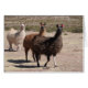 Three llamas walking from the Andes mountains in Bolivia. One white llama and two brown llamas trotting along a dusty dirt pathway along the plains of their natural habitat outside La Paz. Each has red tassels in the ears for either decoration or marking them to distinguish who they belong to. Distinct from the other cameloids such as the vicuna, alpaca, and guanaco, the llamas are often used to carry gear and belongings when trekking up into the high peak mountains. Despite their cute furry appearance, these animals can have a temper and often lay their ears flat and spit at you. ~ be careful approaching.