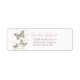 Pastel shades graphic butterflies on swirl stylized wild flowers wedding bridal invitation skinny slim reply labels. Part of two butterflies wedding stationary set. Pretty soft muted in white, brown and pink hues. Add your name and address details. The perfect extra touch to add to wedding invites and envelopes. Uniquely hand inked drawn and designed by Sarah Trett for www.mylittleedenweddings.com