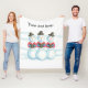 Three caroling snowmen, singing, holding song books, are printed on custom blankets. There is a template placeholder for your message, greeting, at the top. Makes a fun choice for Christmas and the winter season. Thank you for shopping at CherylsArt on Zazzle.