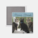 This darling magnet says, "Forever Friends." It features three beautiful cats caught in the act of chasing a fly by the window. They stopped long enough to pose for a picture by the window with the green Jasmine plants behind them. From left to right are Zorro, Mauser and Kimber. And, by the way, the fly didn't stand a chance against these quick hunters.