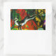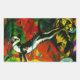 Beautiful and brightly coloured oil on canvas painting by German artist Franz Marc entitled, "Three Cats". The cat in the foreground is black and white, standing on its front paws with back legs in the air, while one yellow cat and a large red cat are in the background. Wonderful combination of reds, greens, yellows and purple. Completion date: 1913.