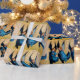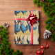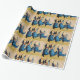 THREE CHRISTMAS ANGELS IN BLUE WRAPPING PAPER