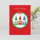 Cute Christmas gnome and pine wreath on red Christmas Greeting Card. All text ready to be personalised.