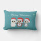 Three Christmas Owls on Sapphire Blue Lumbar Cushion