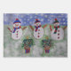 What could be cuter than these three Christmas snowmen? They have only decorated two Christmas trees, so wave their arms in the air in dismay.  Which snowman is not going to get his presents from Santa?  A vibrant, festive snowman design, add a splash of color to your holiday season with these Christmas snowmen.