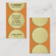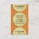 A vertical business card template with three vertically arranged gold coloured 3d effect interlocking cog wheels. Company name and business type in the top wheel with contact details in the centre. Name and job title in the bottom cog wheel. The reverse side of the card has the same cog whhel design but is otherwise left blank. This can be further customised or left as it is, providing useful spaces for notes etc. An attractive retro style design suitable for many businesses.