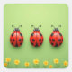 Three vibrant ladybugs rest above bright yellow flowers against a vivid green background. This cheerful scene conveys nature, positivity, and the beauty of simplicity.