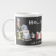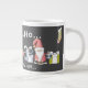 Cute mug with three Santa Gnomes in Red, Blue and Green along with ornaments and gifts.