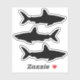 Triple the shark. The vector graphic art is arranged on the square sticker three times so that you have three separate swimming sharks. The design is a swimming shark. You can change the shark sizes if you want to create a school of sharks. Gifts for people that love the sea.