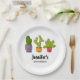Three Cute Cactus in Flower Pots Fun Birthday Paper Plate