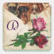 THREE DOGGIES WITH ROSES MONOGRAM SQUARE STICKER