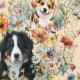 Three Dogs in Wildflowers Seamless Wallpaper