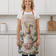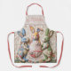 Personalized all-over print apron featuring vintage Easter bunnies quilted-style design. Three adorable fabric-look rabbits with Easter egg basket and "Happy Easter" message. Customize with name embroidered at top. Cottage core shabby chic aesthetic. Perfect for Easter cooking, baking, or kitchen gift.