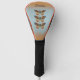 This custom golf club cover for your drivers has three elegant monarch butterflies in blue and orange, brown on a blue background with burnt orange borders. Customise your name or text with the template.