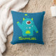 Three eyed alien blue & green kids name pillow