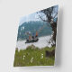 Wall clock featuring a photo of three guys fishing on a foggy and damp morning at Table Rock Lake near Branson Missouri.