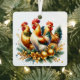 Three French Hens in pine branches and gold holiday ornaments personalised Twelve Days of Christmas themed Christmas ornament.