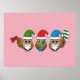 An illustration of three cute gnome owls wearing green, red and blue santa hats and holding an axe, a present and a cut snowy pine tree. Look how are cute the beards and long moustaches of these big-eyed little birds. They are happy and ready to celebrate Christmas. Want to give a gift to your friends and family? Have this birdatwork kawaii design printed on the item you have in mind.