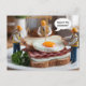 Three construction workers building a sandwich and questioning the choice of adding an egg to the design in this economy