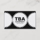 A business card template with a three gear or cog wheels design. The centre gear has space for initials or Monogram, Company name and business type. Name and other contact details on the reverse side arranged on a plain background. This design can also be further customised.