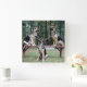 Photograph of three German Shepherd dogs posing on and in from of a bench are the background for this handsome square wall clock.