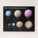 Illustration depicting the three giant planets orbiting the Sun-like star Kepler 51 as compared to some of the planets in our solar system. These planets are all roughly the size of Jupiter but a very tiny fraction of its mass. This means that the planets have an extraordinarily low density, more like that of styrofoam rather than rock or water. The planets may have formed much farther from their star and migrated inward. Now their puffed-up hydrogen/helium atmospheres are bleeding off into space. Eventually, much smaller planets might be left behind. The colours in this illustration are imaginary.