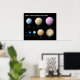 Illustration depicting the three giant planets orbiting the Sun-like star Kepler 51 as compared to some of the planets in our solar system. These planets are all roughly the size of Jupiter but a very tiny fraction of its mass. This means that the planets have an extraordinarily low density, more like that of styrofoam rather than rock or water. The planets may have formed much farther from their star and migrated inward. Now their puffed-up hydrogen/helium atmospheres are bleeding off into space. Eventually, much smaller planets might be left behind. The colours in this illustration are imaginary.