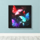 Three Glowing Butterflies on night background Canvas Print