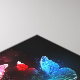 Three luminous, red, purple, green, textured, night butterflies on black luminous background.