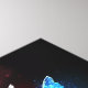 Three luminous, red, purple, green, textured, night butterflies on black luminous background.