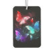 Three luminous, red, purple, green, textured, night butterflies on black luminous background.