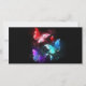 Three luminous, red, purple, green, textured, night butterflies on black luminous background.