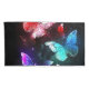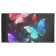 Three luminous, red, purple, green, textured, night butterflies on black luminous background.