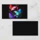 Three luminous, red, purple, green, textured, night butterflies on black luminous background.