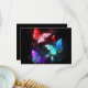 Three luminous, red, purple, green, textured, night butterflies on black luminous background.